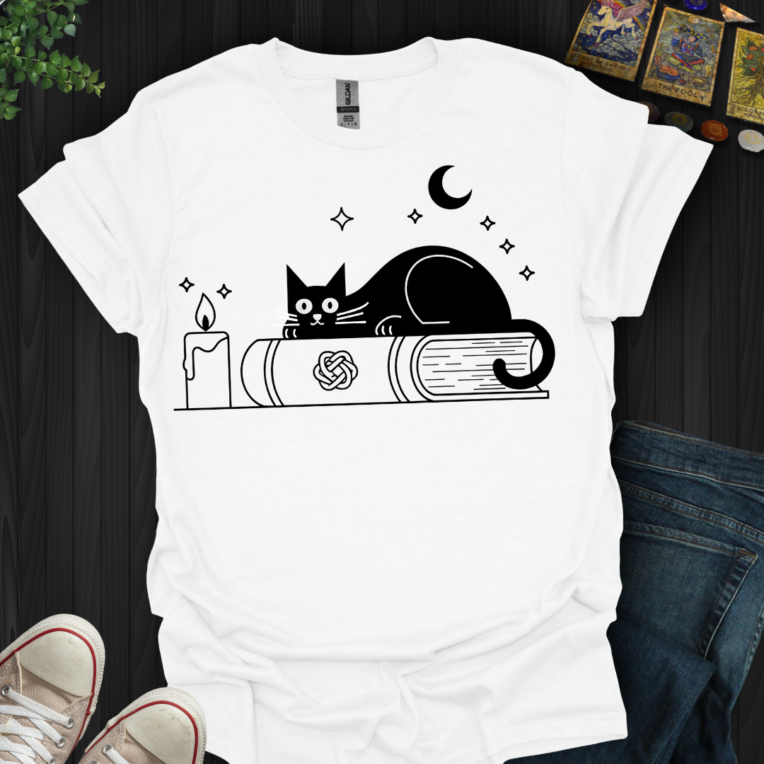 Whiskers, wonders, and witchy vibes! 🐾✨ This enchanting design features a curious black cat lounging atop a magical tome, surrounded by celestial charms, a glowing candle, and the whispers of midnight. 🌙🔥 Perfect for anyone whose heart beats in rhythm with the mystical and the meow. Summon this magical companion today! 💫