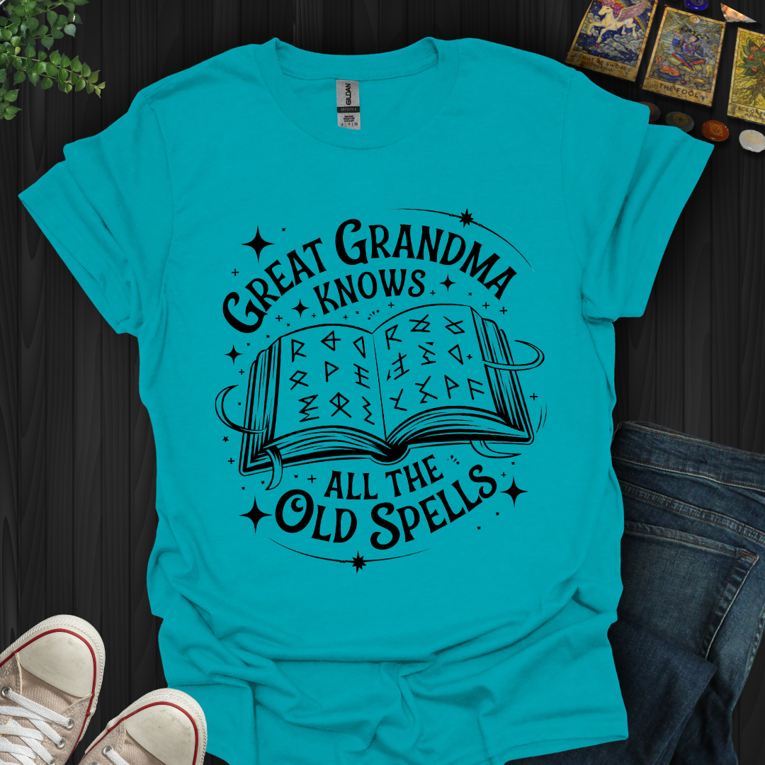 Unlock the wisdom of the ages with this enchanting design! Featuring an open spell book filled with ancient runes and the playful phrase, "Great Grandma Knows All the Old Spells," it’s perfect for those who believe magic (and Grandma) always knows best. 🪄🌙 A must-have for mystical souls with a sense of humor! 🧙♀️💫