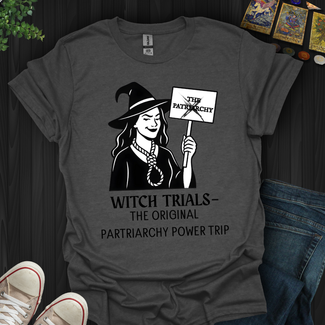 Defiance never looked so enchanting. This tee features a confident witch in her pointed hat, smirking as she holds a bold protest sign with “THE PATRIARCHY” crossed out in true magical rebellion. With a noose-style rope necklace symbolizing strength through survival, this design blends gothic attitude with feminist fire. 🖤✨