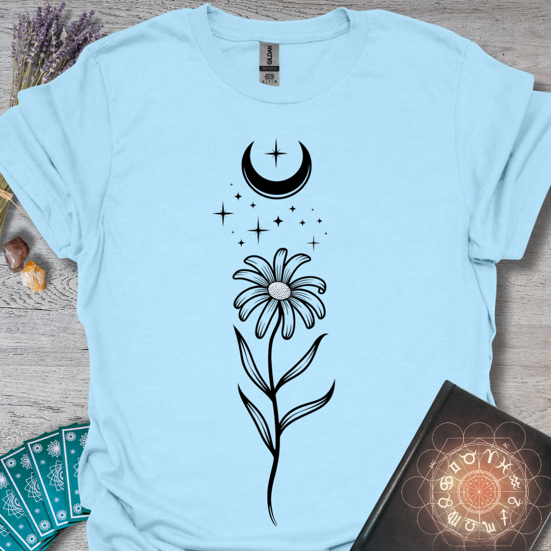 🌙✨ Embrace the magic of the night with this dreamy floral design! 🌼🌿 Featuring a celestial bloom reaching for the moon and stars, it's perfect for those who believe in midnight magic.🌼🌿