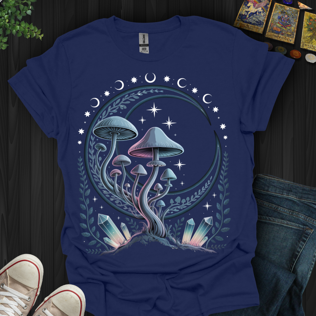 This magical design features moonlit mushrooms reaching toward a cosmic sky, framed by crescent moons, stardust, enchanted crystals, and celestial branches. For the ones who talk to stars, charge their intentions in moonbeams, and know that fungi are more than just... fungi.