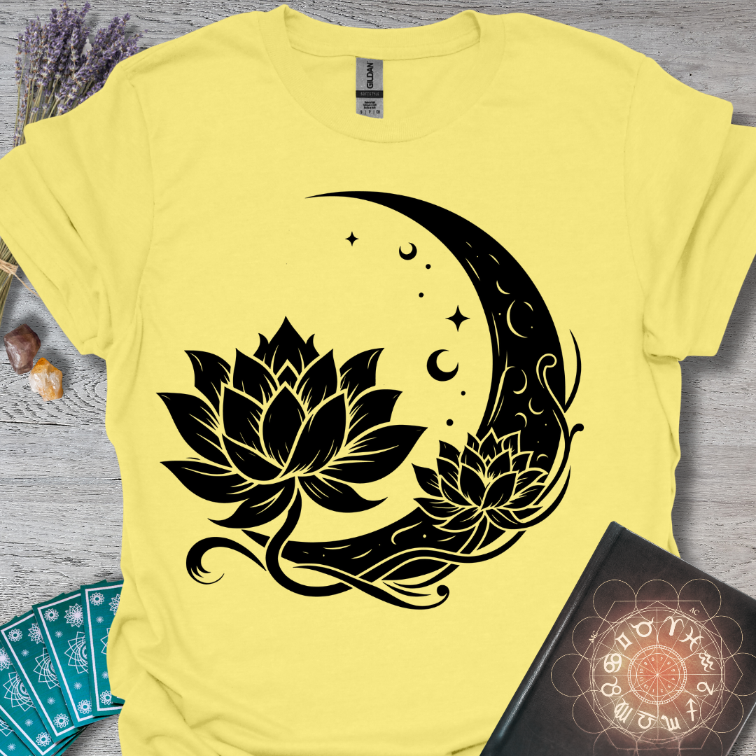Find balance and beauty in this captivating design featuring a blossoming lotus cradled by a mystical crescent moon. 🌙✨ Perfect for those who seek peace, growth, and a touch of cosmic elegance in their lives!