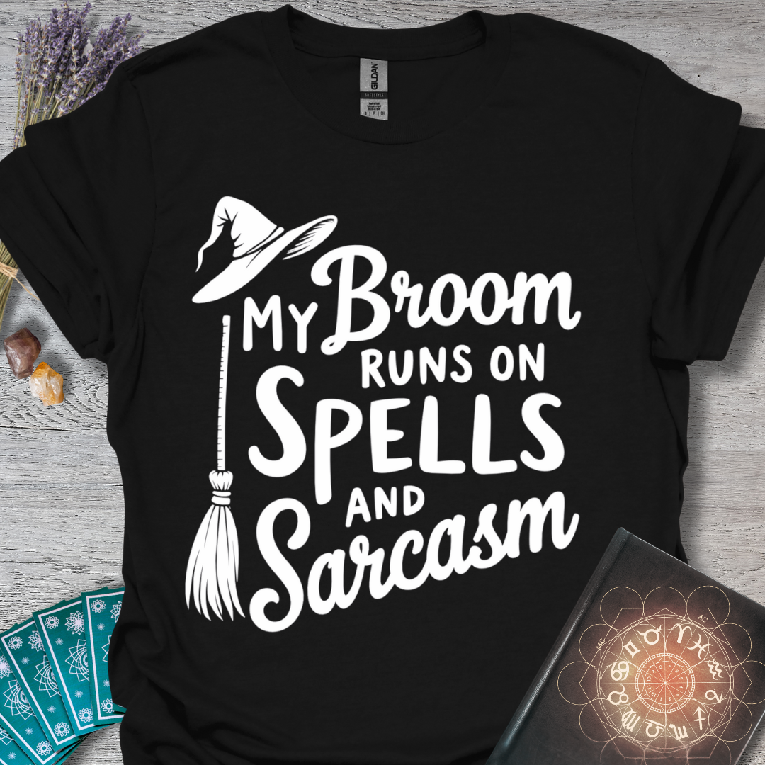 My Broom Runs On Spells And Sarcasm T-Shirt