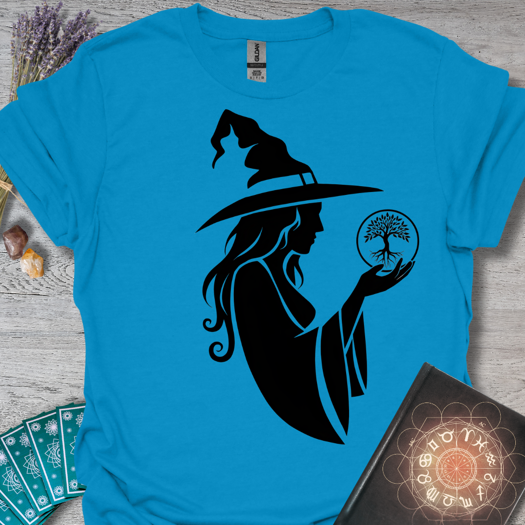 🌙✨ Embrace the magic of nature with this enchanting design of a witch gazing into a crystal ball, revealing the Tree of Life. Perfect for those who blend wisdom, magic, and a deep connection to the earth. 🖤🌿