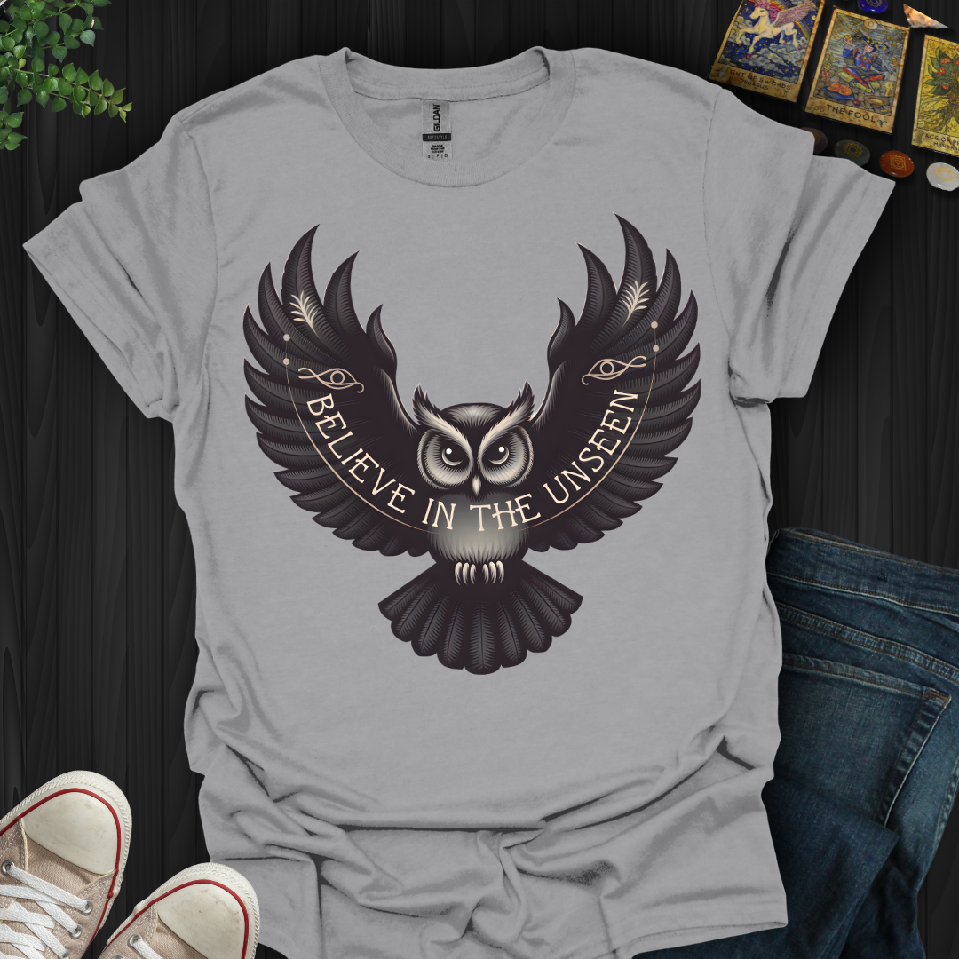 Tap into the wisdom of the unseen with this striking owl design! Featuring outstretched wings, all-seeing eyes, and the inspiring phrase โBelieve in the Unseen,โ this tee radiates mystery and knowledge. ๐๐๏ธ๐ฆ