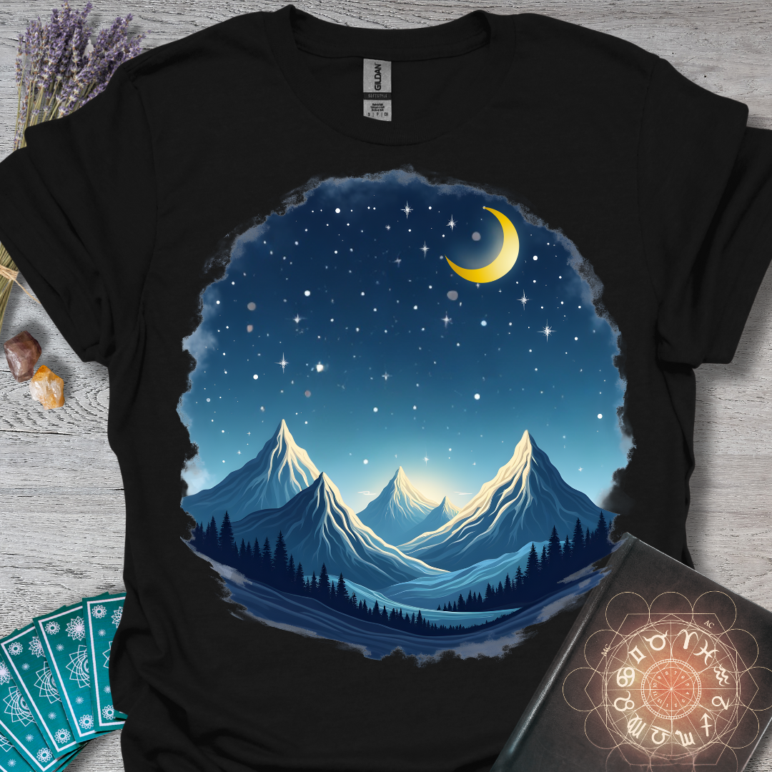 ⨠Gaze upon the majestic mountains under a crescent moon, where the stars shine bright and dreams take flight. Perfect for the mystic soul who loves to wander beneath the night sky. šš¤