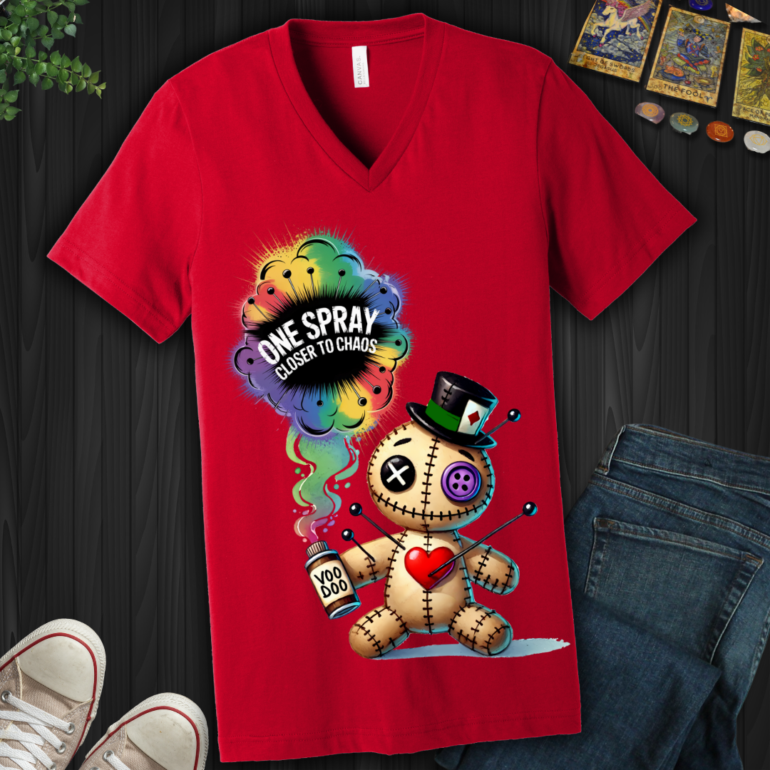 You’re not messy—you’re magically unpredictable. This stitched-up little troublemaker is locked, loaded, and ready to spritz some serious mayhem. .Let's open a can of woop-@** Featuring our top-hatted voodoo doll wielding a rainbow cloud of glorious chaos, this design is perfect for those who cast spells with a side of sarcasm. Wear it when you’re feeling colorful, cursed, or just one trigger-pull away from delightful disorder.