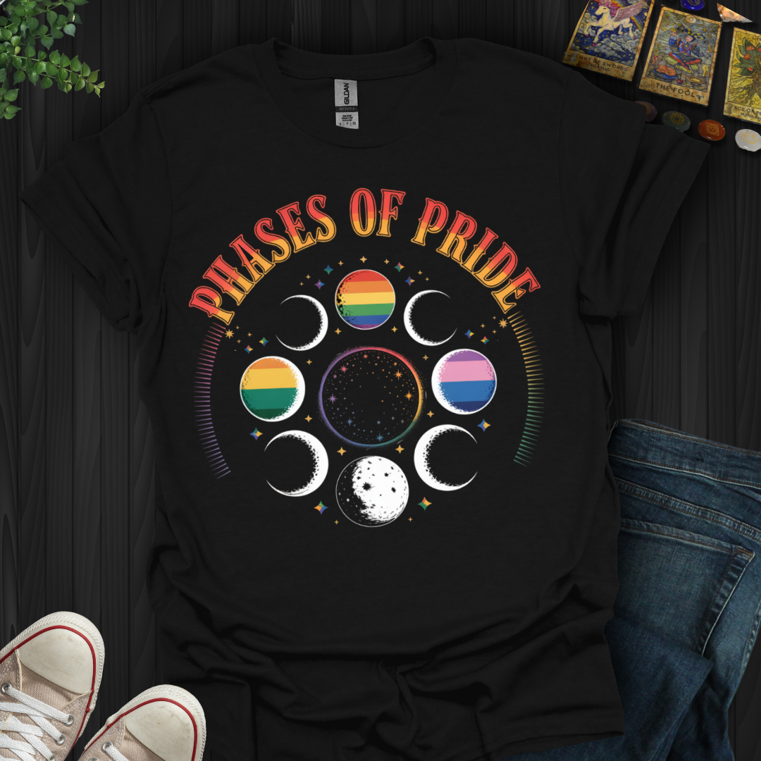 Celebrate every phase of your journey with this mystical "Phases of Pride" design. Featuring the rainbow and bi pride flags within lunar phases, it’s a cosmic embrace of identity and love that transcends the ordinary. 🌈✨