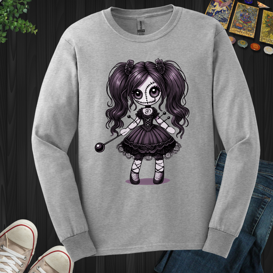 Don’t let the bows fool you—this gothic dolly is stitched with style and spells. With laced-up limbs, a voodoo smirk, and pins at the ready, she’s proof that cute can still curse. Perfect for the beautifully twisted and the hex-tra fabulous. 💜🖤