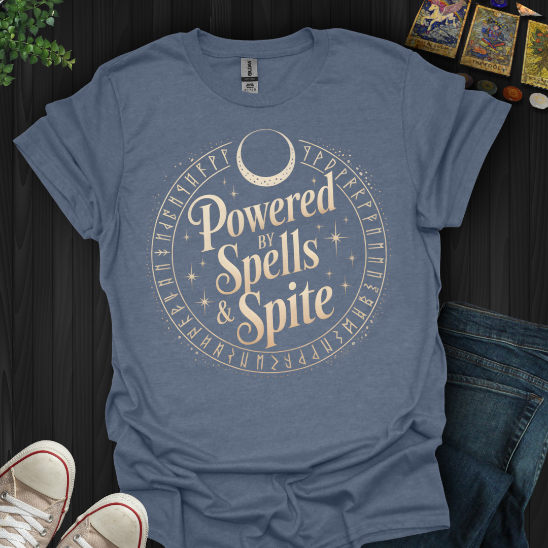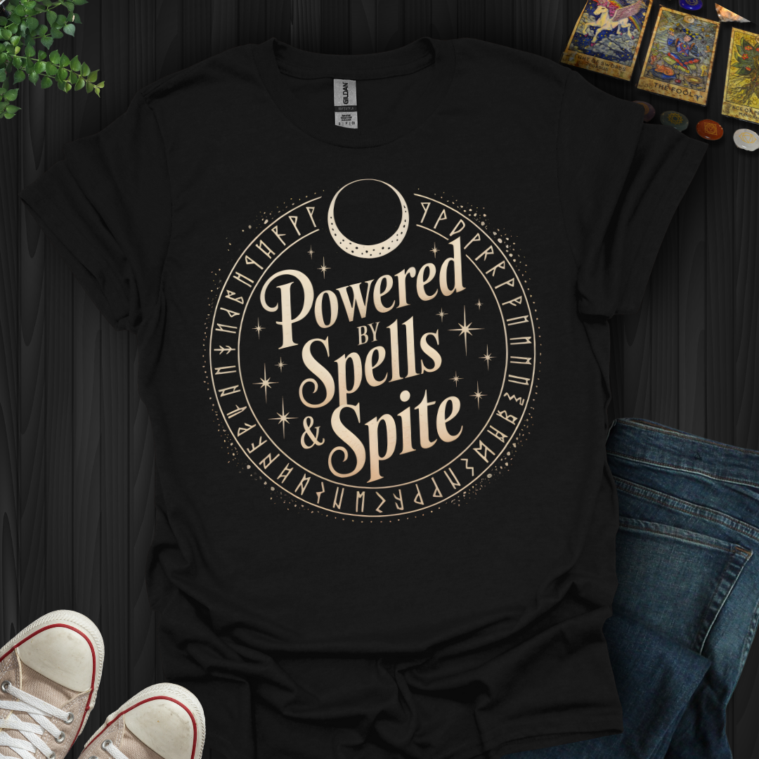 Who needs caffeine when you're fueled by ancient magic and petty vengeance? The “Powered by Spells & Spite” tee is your celestial badge of honor—wrapped in runes, stardust, and moonlit sarcasm. This bold design is made for the unapologetic enchantress who casts hexes with flair and never forgets a grudge. ✨🌙