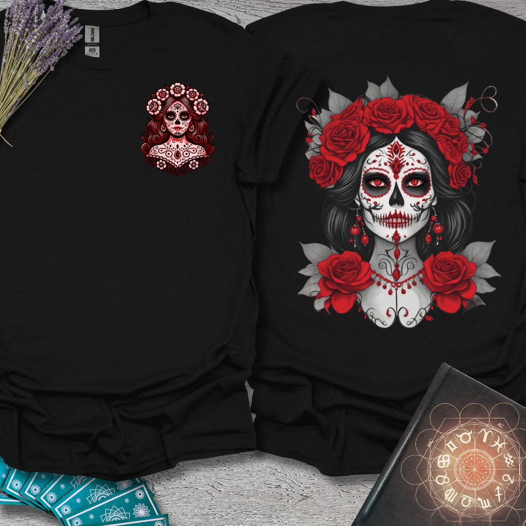 💀🌹 Celebrate life and style with this stunning Day of the Dead t-shirt! Featuring a sugar skull goddess adorned with vibrant red roses, this design brings elegance and a dash of spooky charm. Perfect for those who embrace beauty in both life and the afterlife!