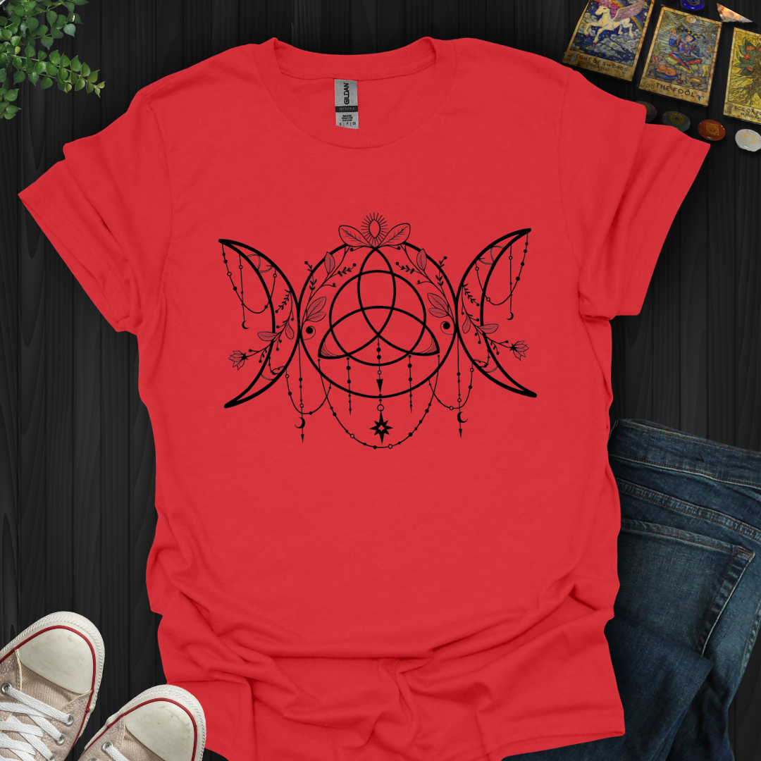 An ornate Triple Moon design interwoven with delicate floral patterns, celestial symbols, and mystical charms. 🌙✨ Perfect for those who honor the divine feminine and the cycles of nature with elegance and style. 🌿🔮