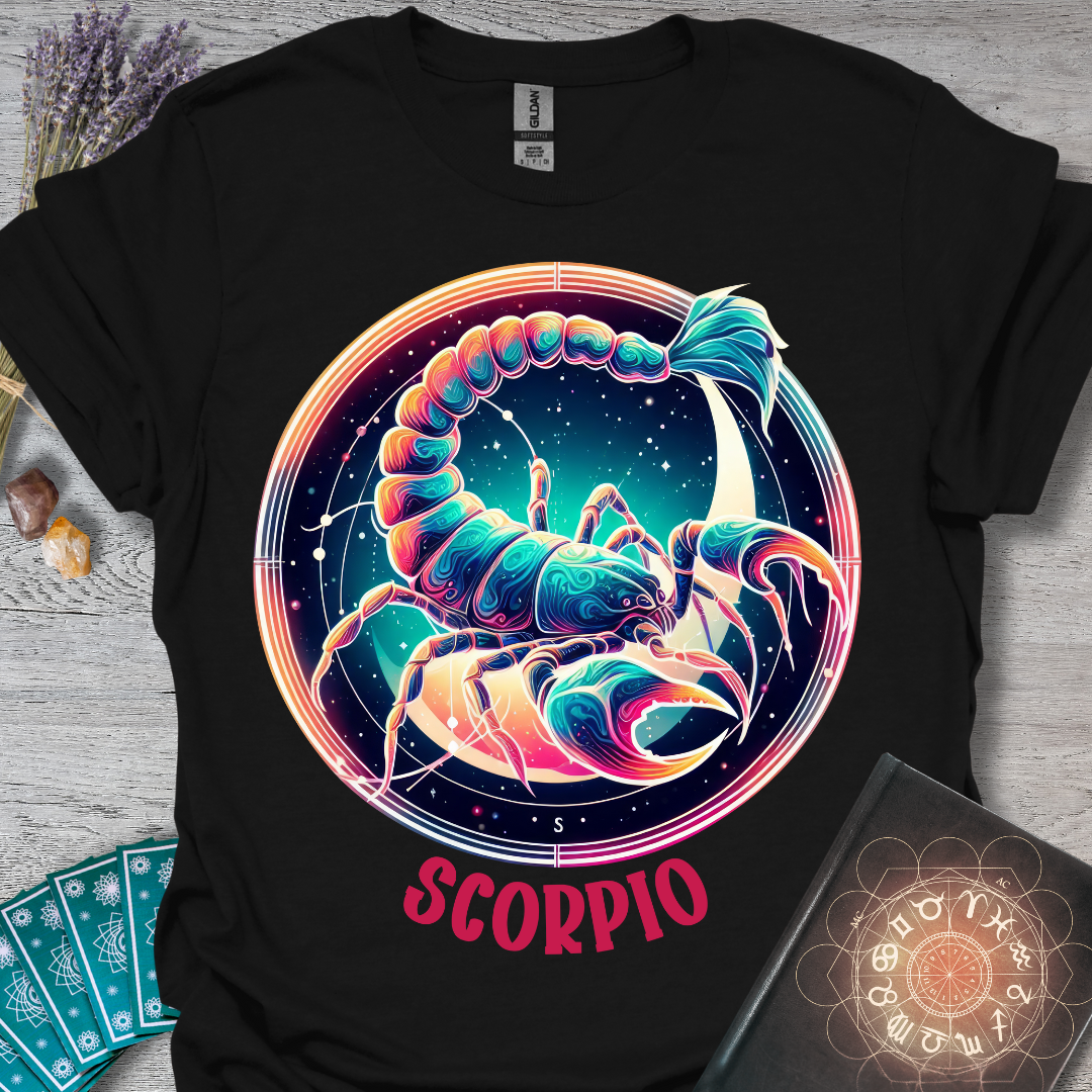 🦂🌙Unleash your fierce and mysterious side with this striking Scorpio tee! The vibrant colors and celestial design are perfect for those born under this intense sign. Wear your zodiac pride in style and let the cosmos guide your way! ✨♏