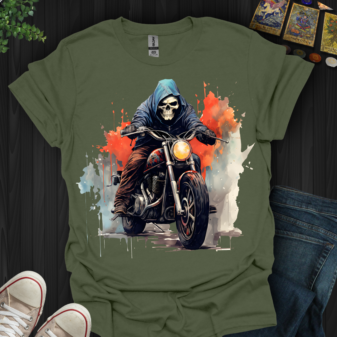 💀🔥Fuel your wild side with this fiery Grim Reaper on wheels! Whether you're a rebel rider or just love a bit of ghostly grit, this tee brings the heat. Perfect for anyone ready to haunt the highways in style!