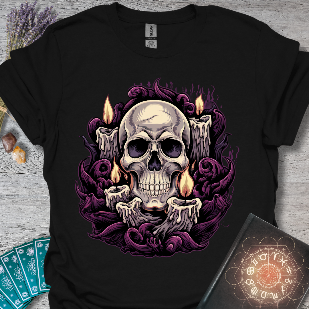 💀🕯️Embrace the dark and mysterious with this 'Skull of Shadows' design! Surrounded by eerie, flickering candles and swirling shadows, this hauntingly beautiful artwork is perfect for those who walk the line between the mystical and the macabre. 🌑✨