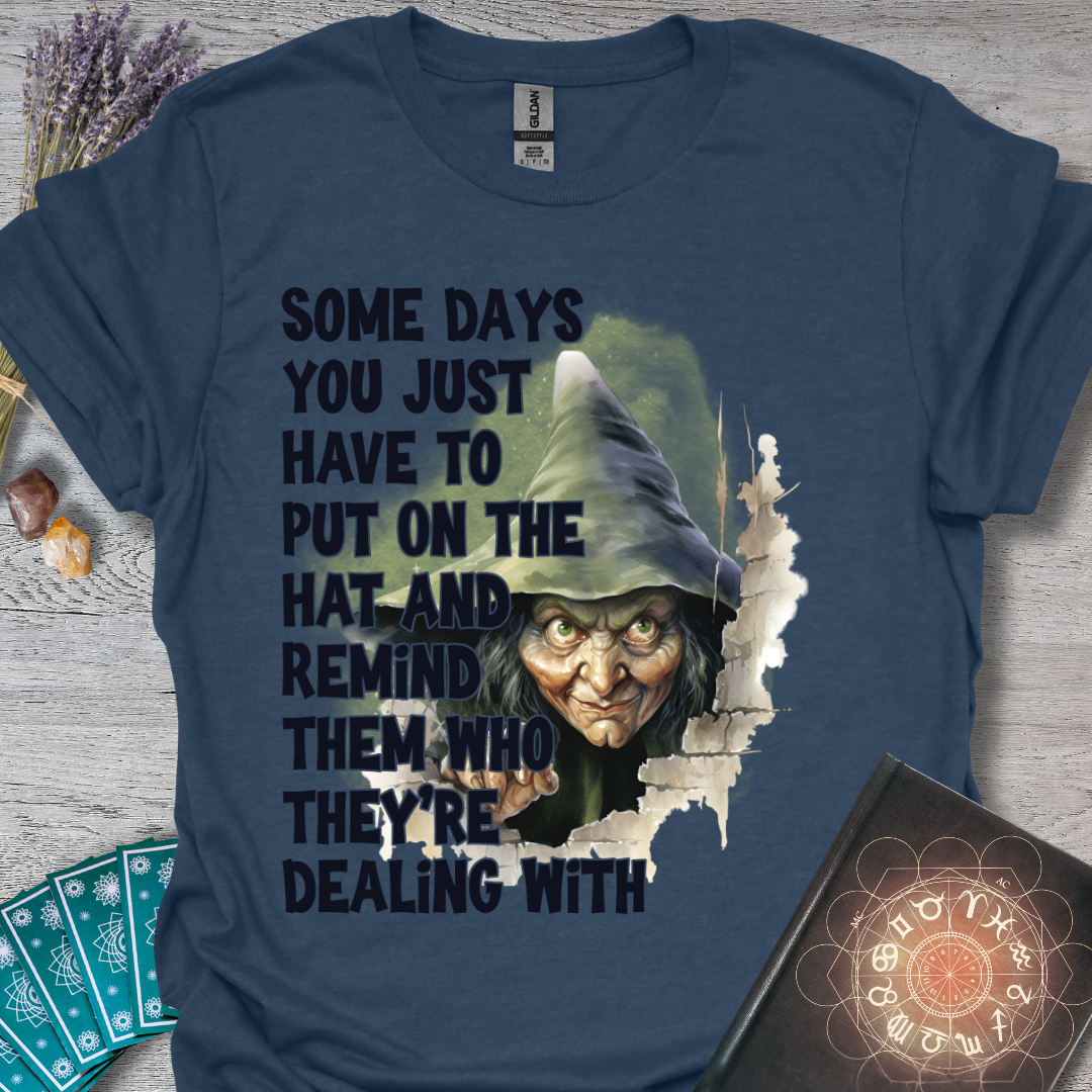 🧙♀️ This tee is perfect for those days when you need to channel your inner witch and remind the world who they're dealing with! Featuring a mischievous witch peeking through a cracked wall, this design pairs humor with a bit of a dark edge. The bold text, "Some days you just have to put on the hat and remind them who they’re dealing with," makes this a standout piece for those who aren't afraid to show their sassy side. Ideal for Halloween or as a year-round statement!