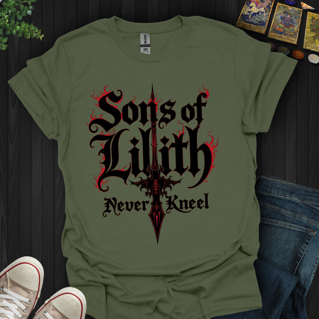 Channel the rebellious power of Lilith with this fierce design, embodying defiance, strength, and untamed fire. 🔥 With gothic lettering, a dagger dripping in darkness, and flames of resistance, this is for those who stand unbowed. Never kneel. Never surrender. ⚔️🖤
