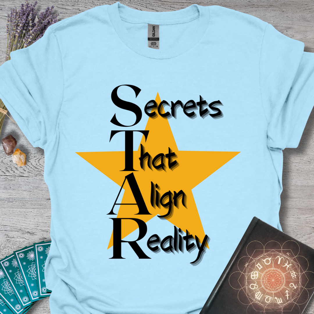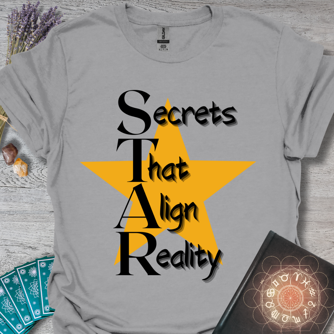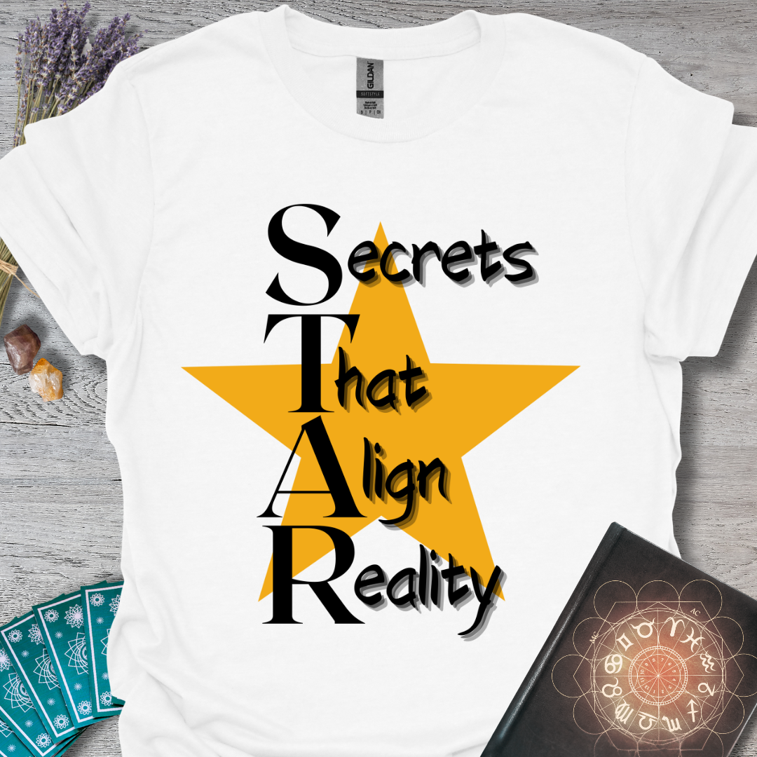 🌟Unlock the cosmic mysteries with this stellar tee! The word "STAR" shines bright, revealing "Secrets That Align Reality," perfect for those who believe in the magic that connects the universe. ✨🌌
