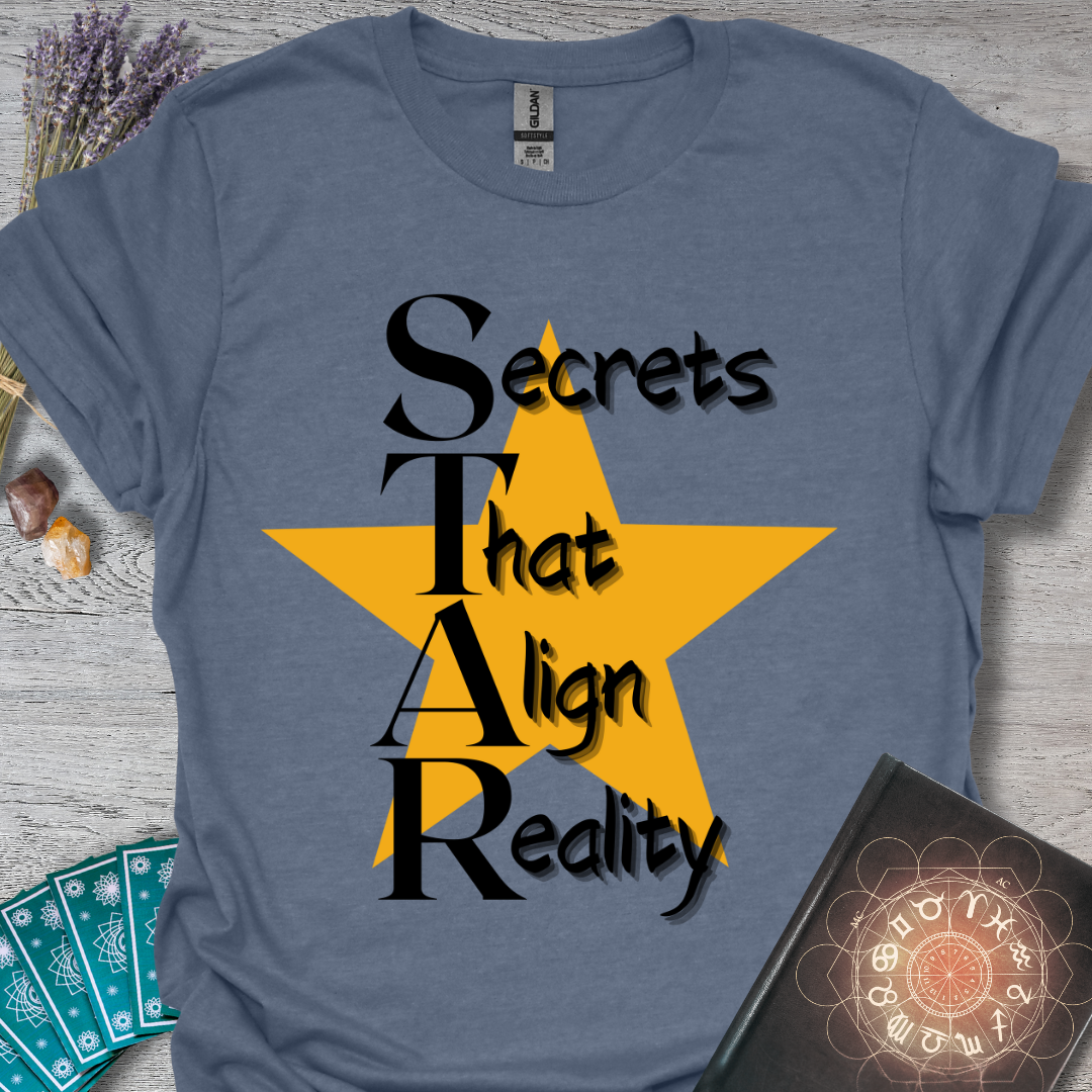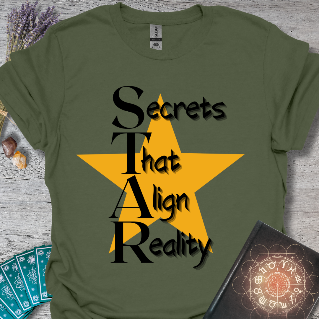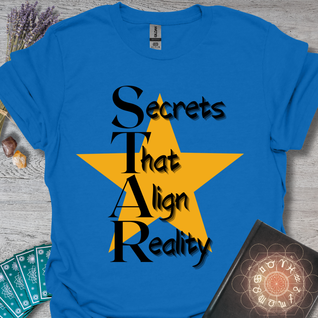 🌟Unlock the cosmic mysteries with this stellar tee! The word "STAR" shines bright, revealing "Secrets That Align Reality," perfect for those who believe in the magic that connects the universe. ✨🌌
