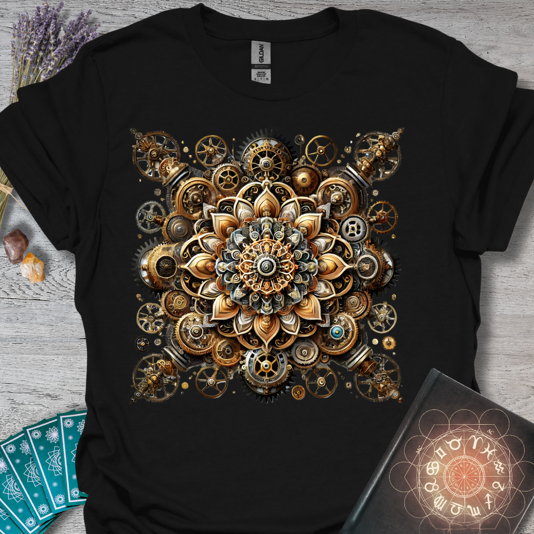 🌼⚙️ This design is a stunning fusion of nature and machinery, featuring a blooming mandala of golden gears, cogs, and intricate metalwork radiating from a central flower. Set against a dark heather background, the steampunk-inspired petals give an organic feel to mechanical elements, blending the elegance of floral motifs with industrial precision. Ideal for those with a passion for the intersection of natural beauty and engineering, this shirt brings together the harmony of life and technology in a visually captivating masterpiece.
