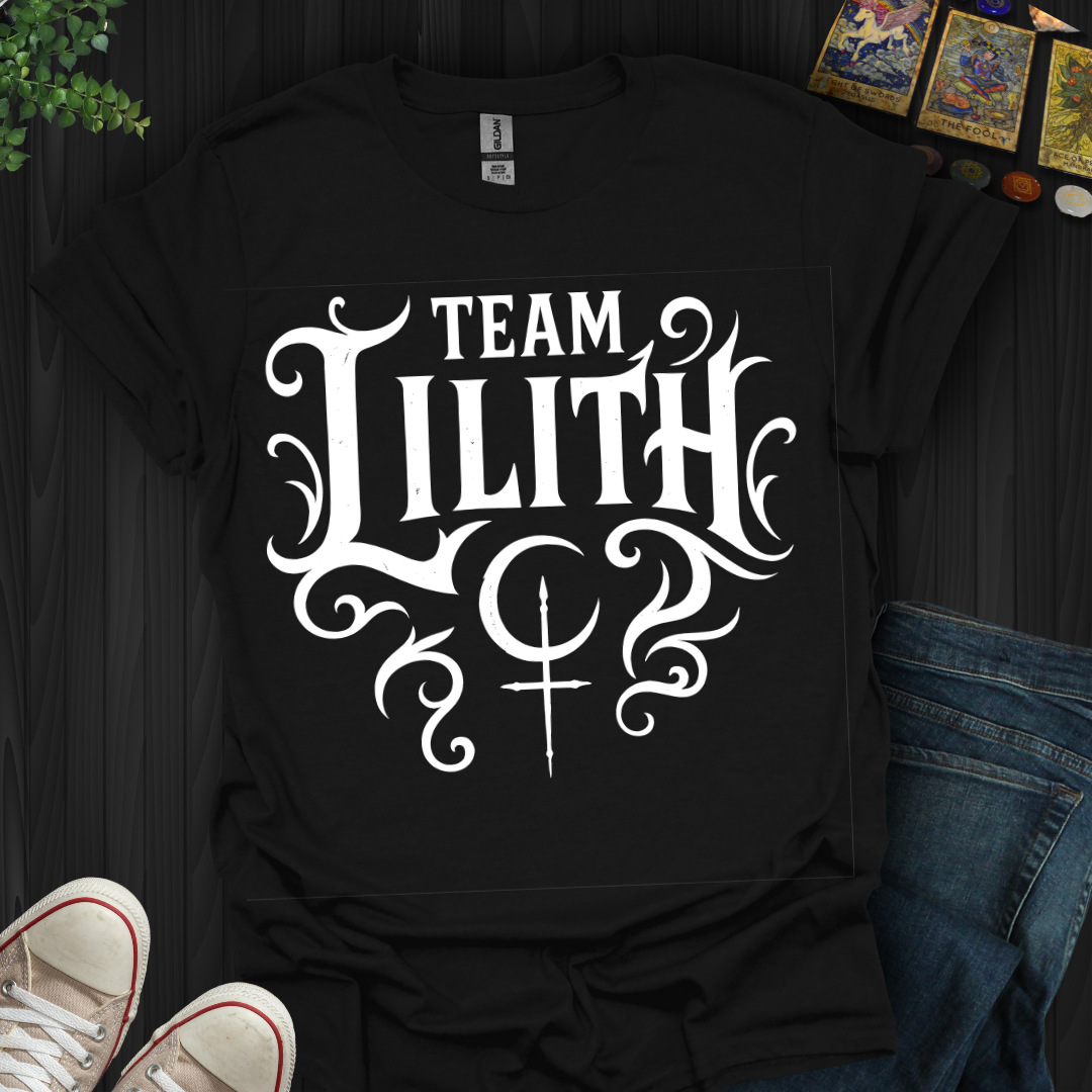 Declare your allegiance to unapologetic feminine power with our “Team Lilith” design. Bold gothic typography is framed by mystical flourishes and anchored with the ancient sigil of Lilith—symbol of rebellion, sensuality, and untamed strength. This design is a quiet roar for those who walk in shadow and power, perfect for the ones who choose to rise without permission.
