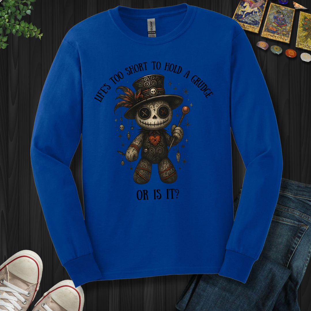 With his sinister little smirk, oversized top hat, and just the right amount of decorative doom, this voodoo doll is dressed to kill… with charm. One hand holds a pin (for emotional support, obviously), while gothic flourishes, skull charms, and ancient spite swirl in the air.