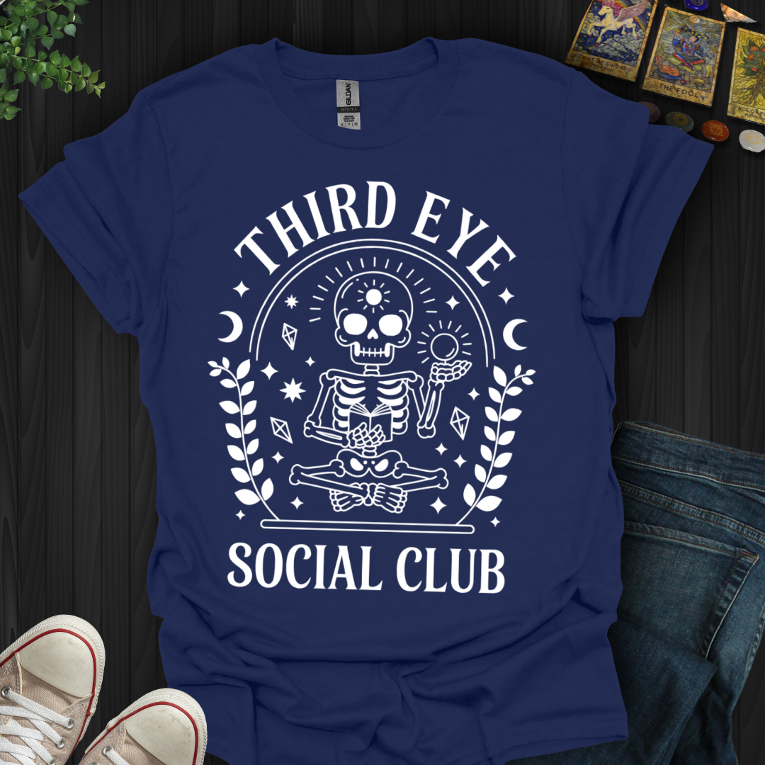 Join the club where the vibes are mystical, the chakras are aligned, and the third eye is always watching. This design blends cosmic consciousness with afterlife cool—featuring a meditating skeleton, third eye beaming, and sacred symbols swirling all around.