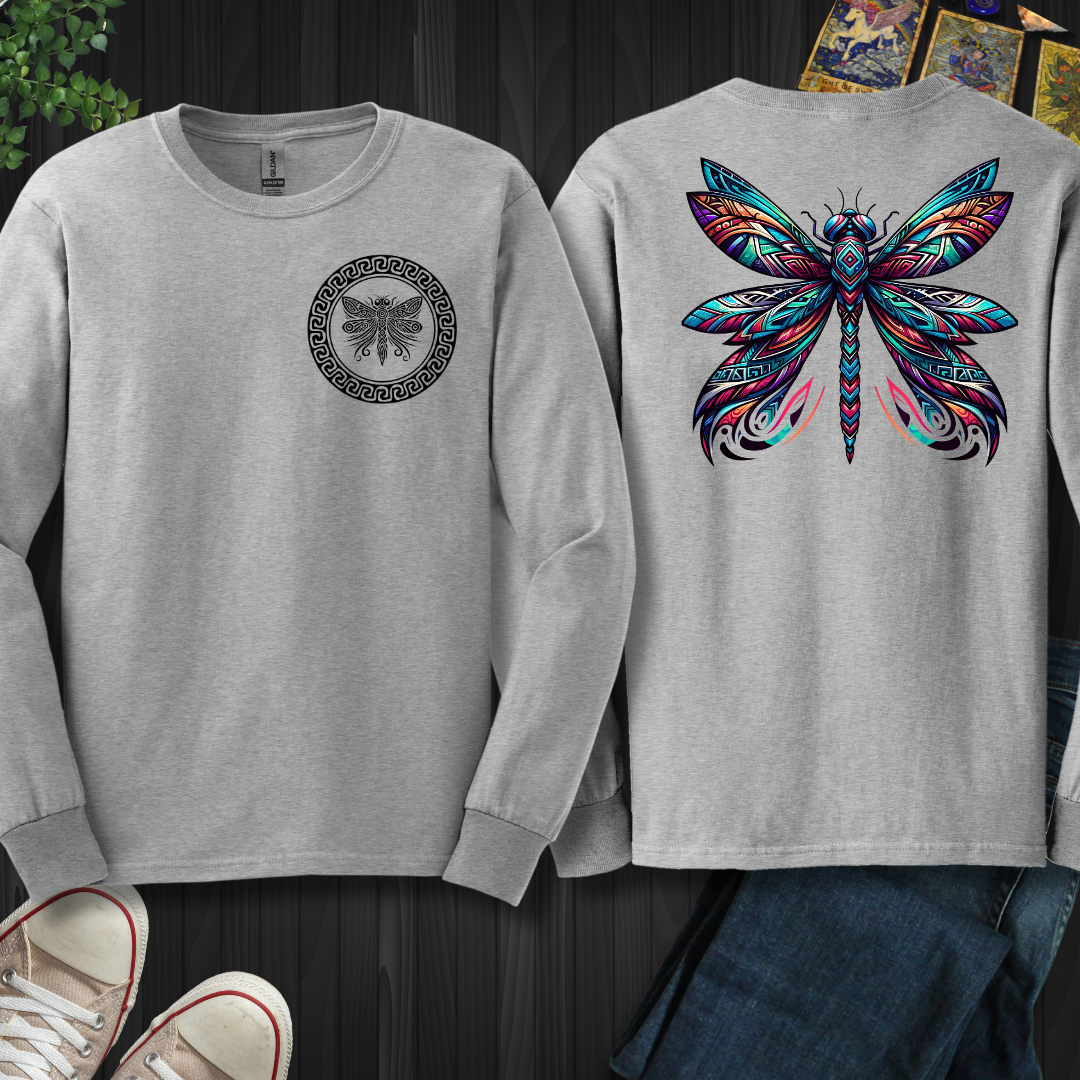 Tribal Dragonfly Front and Back Long Sleeve Tee