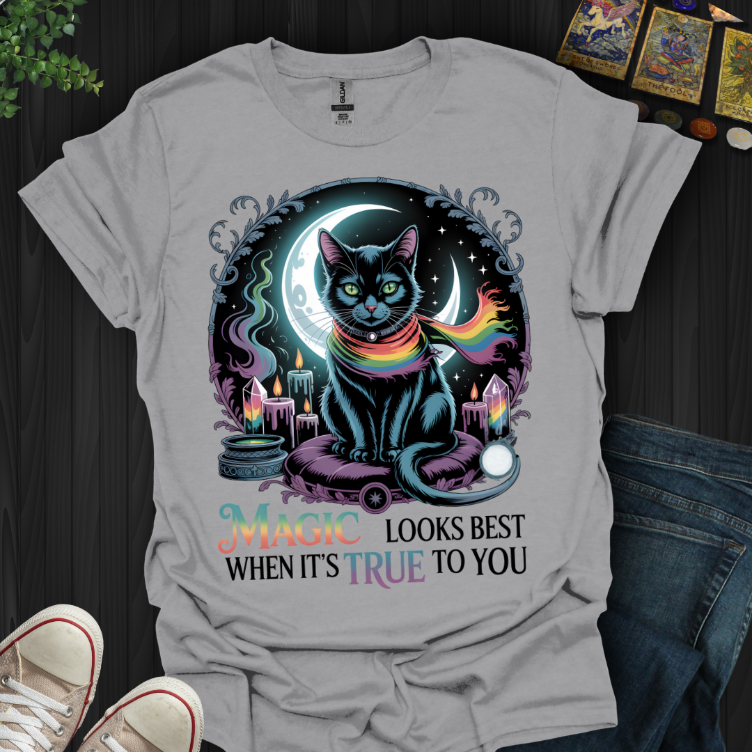 Celebrate your power, your pride, and your path. This enchanting design features a mystical black cat wrapped in a rainbow scarf, surrounded by crystals, candlelight, and cosmic vibes. Whether you’re casting spells or just showing up as your boldest self, remember: Magic looks best when it’s true to you.