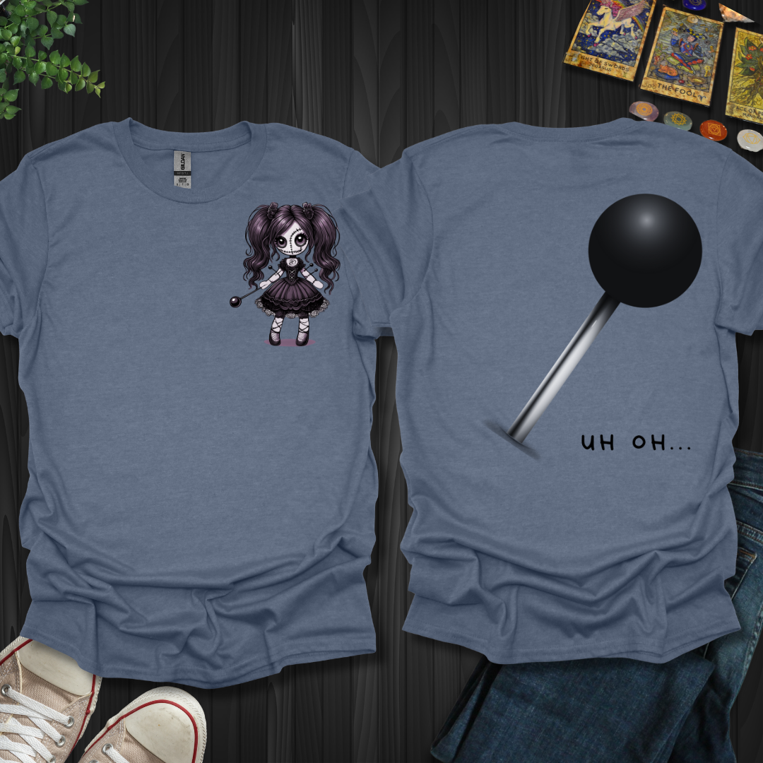 A little voodoo, a little attitude! 🪡💀 This spellbinding double-sided design features a stitched-up gothic doll with button eyes and a mysterious charm. Flip it over, and uh oh… someone’s about to feel the magic! 🔮✨ Perfect for mystical misfits who love a little dark enchantment with their style. 🖤