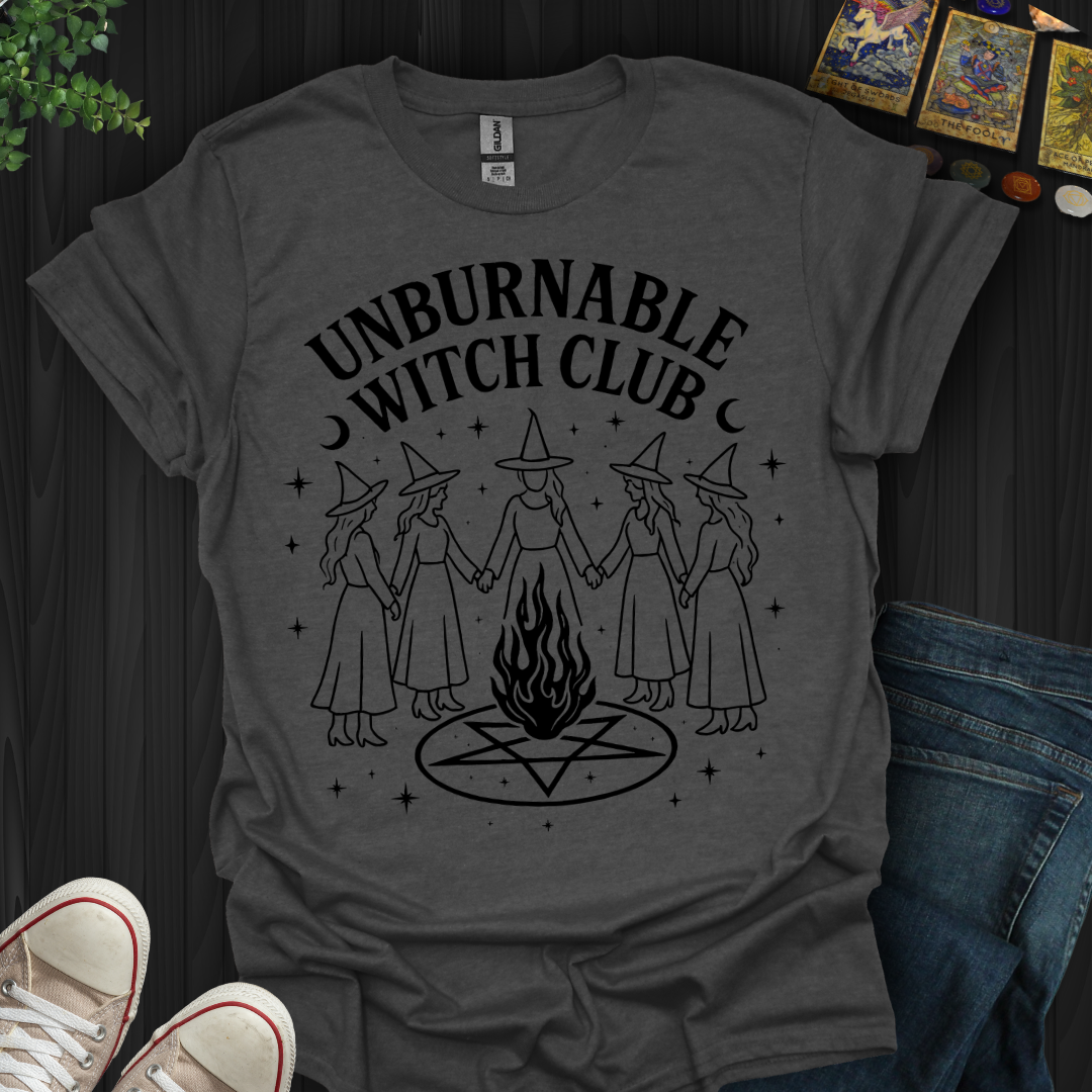 Gather 'round the fire, sisters—the flames can't touch us here. Join the circle of resilience, rebellion, and radiant magic with our "Unburnable Witch Club" tee. This wickedly divine design celebrates every witch who's walked through fire and emerged stronger, brighter, and unapologetically herself. Slip it on and let the world know you burn only with your own fierce spirit. Unburnable. Unbreakable. Undeniably magical.