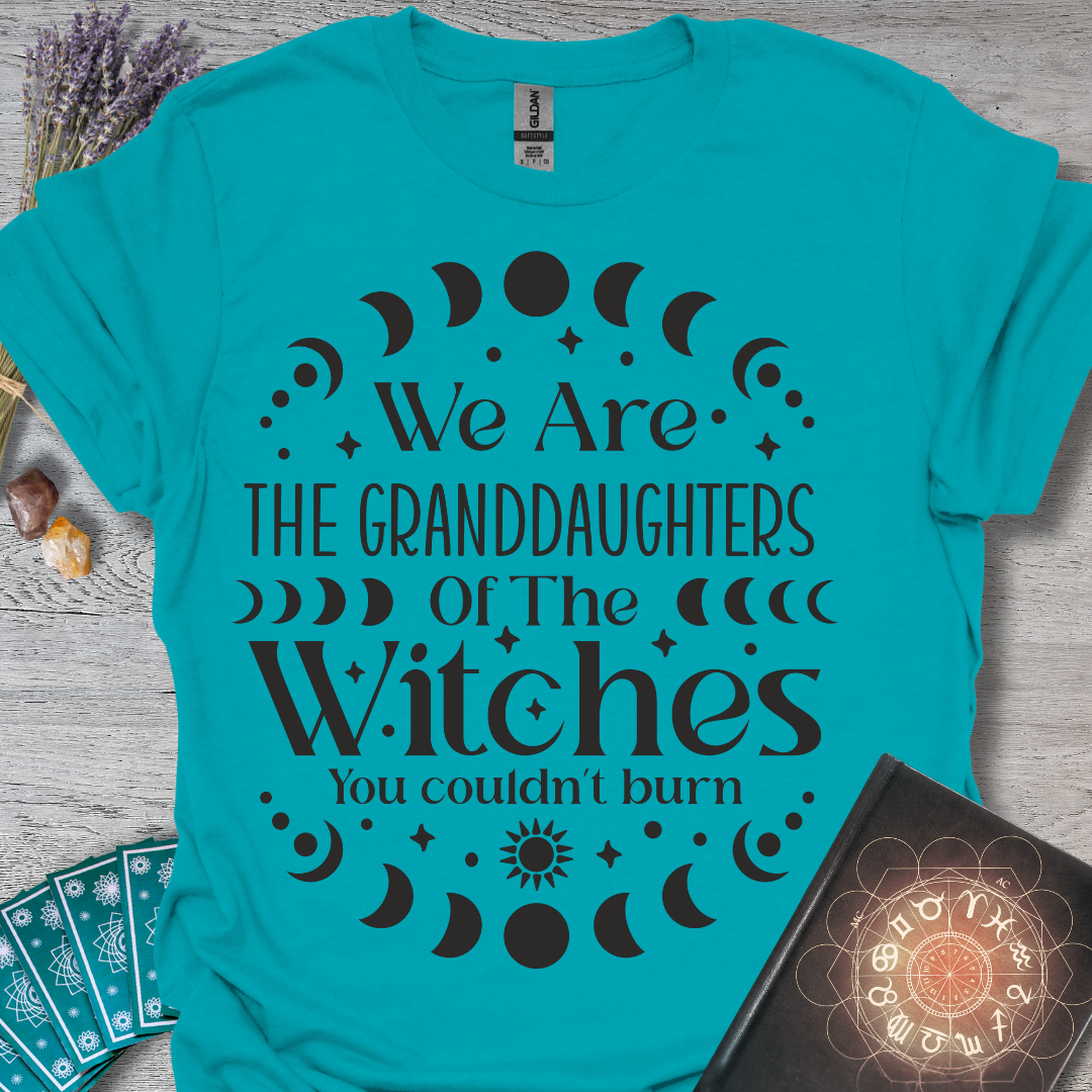🔥 We are the granddaughters of the witches you couldn’t burn. 🔮 Proud, fierce, and unapologetically magical! ✨ Embrace your witchy heritage in style with this empowering tee! 🌙