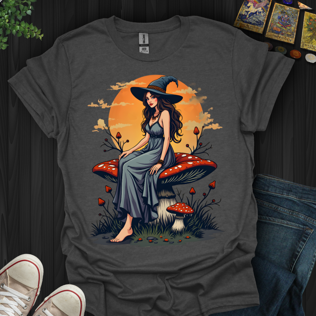 🍄🌕 Under the glow of a mystical moon, this enchanting witch takes a seat on her toadstool throne. With moody autumn vibes and a dash of dark magic, this tee is perfect for anyone who feels at home in the forest under a starry sky. Embrace the mystery and let your magical side shine! 🖤✨